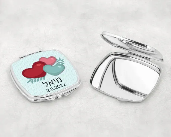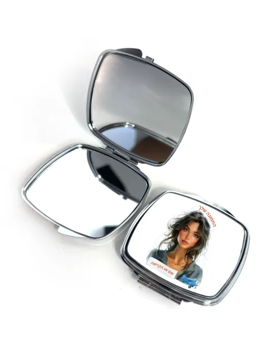 מראה כיס צורת עגול/מרובע/לב נפתחת, בעיצוב יוקרתי ממתכת מוברשת